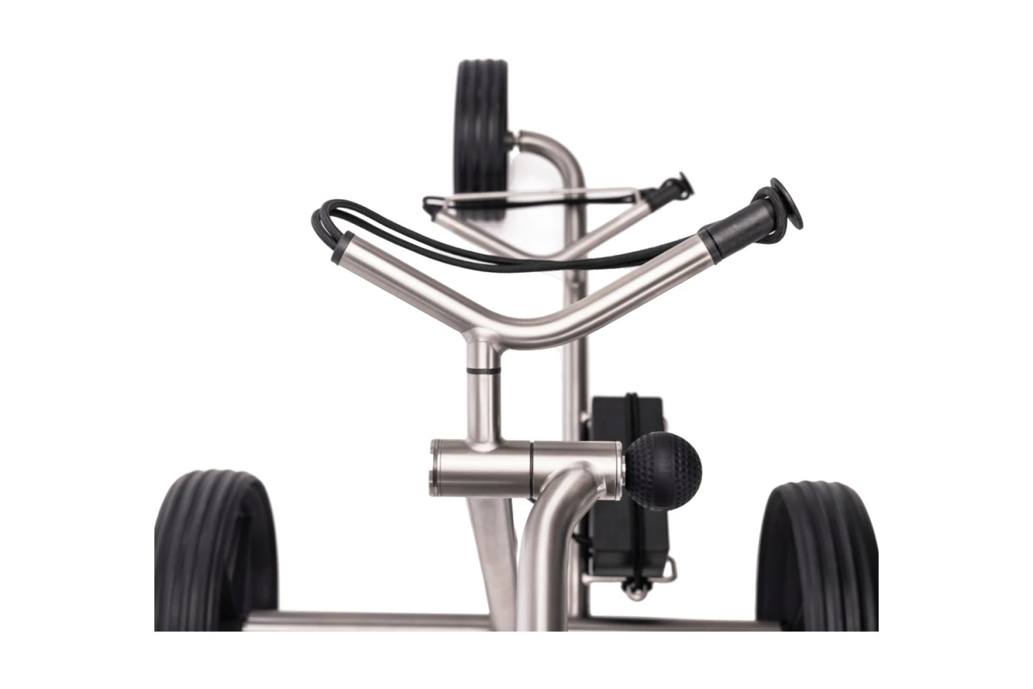 Der Ledergriff in T-Form passt sich durch seine ergonomische Form optimal der Hand an und bringt samt Drehgriffsteuerung mit Vorlauffunktion viel Komfort auf ausgiebigen Golfrunden. Das absolute Highlight ist der innovative LED-Leuchtring, der am Mittelrohrkopf des TiCad VOYAGE positioniert ist. Die LED-Funktion des Leuchtrings ist aktiv, sobald der Akku am Trolley eingesteckt ist und gibt Auskunft über den Status des Trolleys.